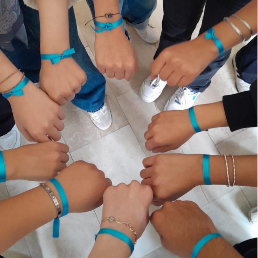 “Abla, bu bilekliklerin rengi mavi mi, turkuaz mı? Yarın alıp okulumda dağıtmak istiyorum. Okulumda, en azından sınıfımda bir duruş göstermek istiyorum. Videonuzu görünce, ‘Ben de yapabilirim!” dedim.” diye sormasıyla başladı sohbetlerimiz. Ertesi gün hemen fotoğraf attı: Kendisinin ve arkadaşlarının bileklerinde turkuaz kurdeleler!